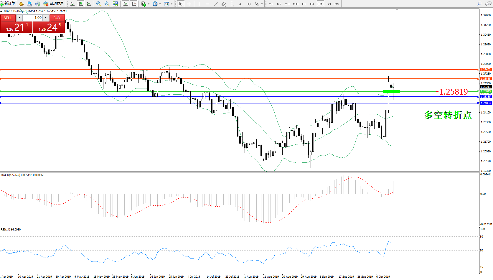 交易策略:1.25819上方看涨,目标1.26855、1.27603