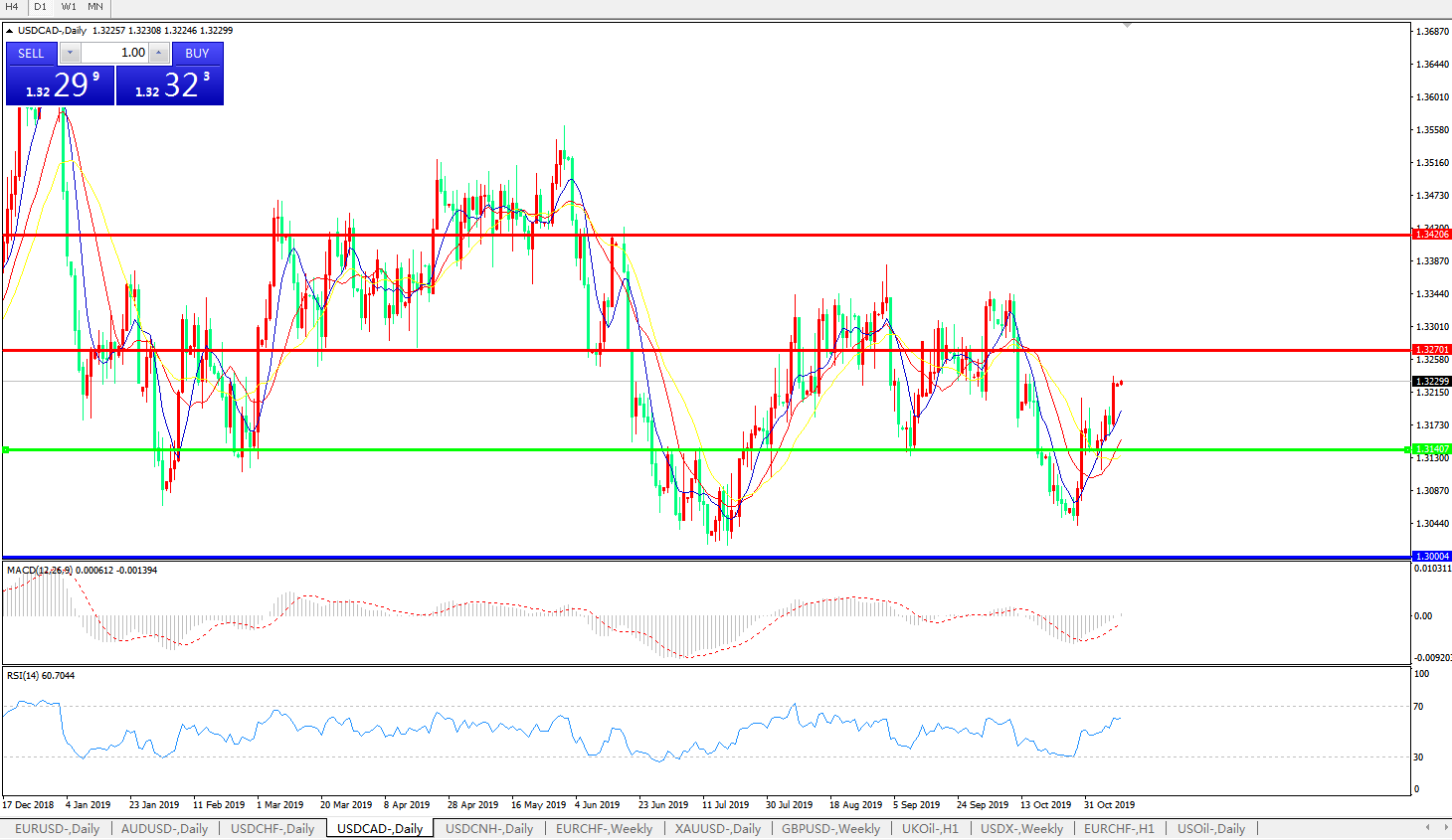 美元兑加元USDCAD 日线图: