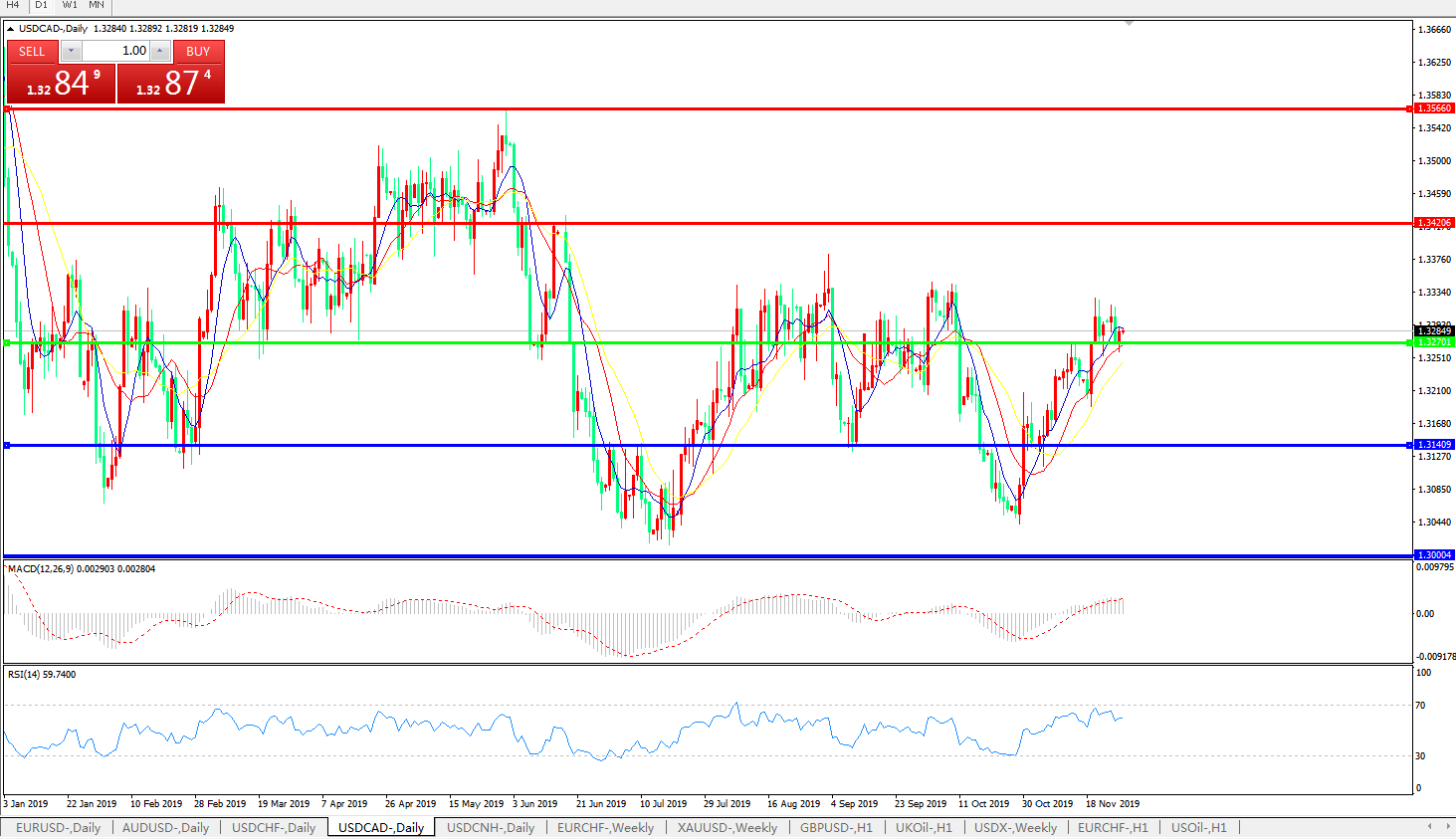 技术面简析:日线图均线维持攻势,汇价维持在多空转折区域整理MACD穿越0轴且量能维持放量迹象RSI震荡走低短期汇价需关注1.3270关口争夺,等待汇价整理完毕选择方向