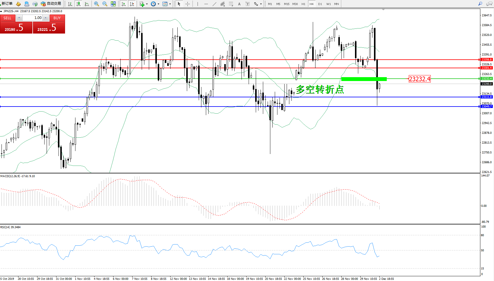 技术点评:高位维持宽幅震荡中空头动力发力急速下挫,跌破布林带指标下轨有进一步下跌可能性,且布林带指标处于张口走势中,MACD指标跌破0轴线后弱势徘徊中,RSI指标跌破50均衡线后窄幅震荡;