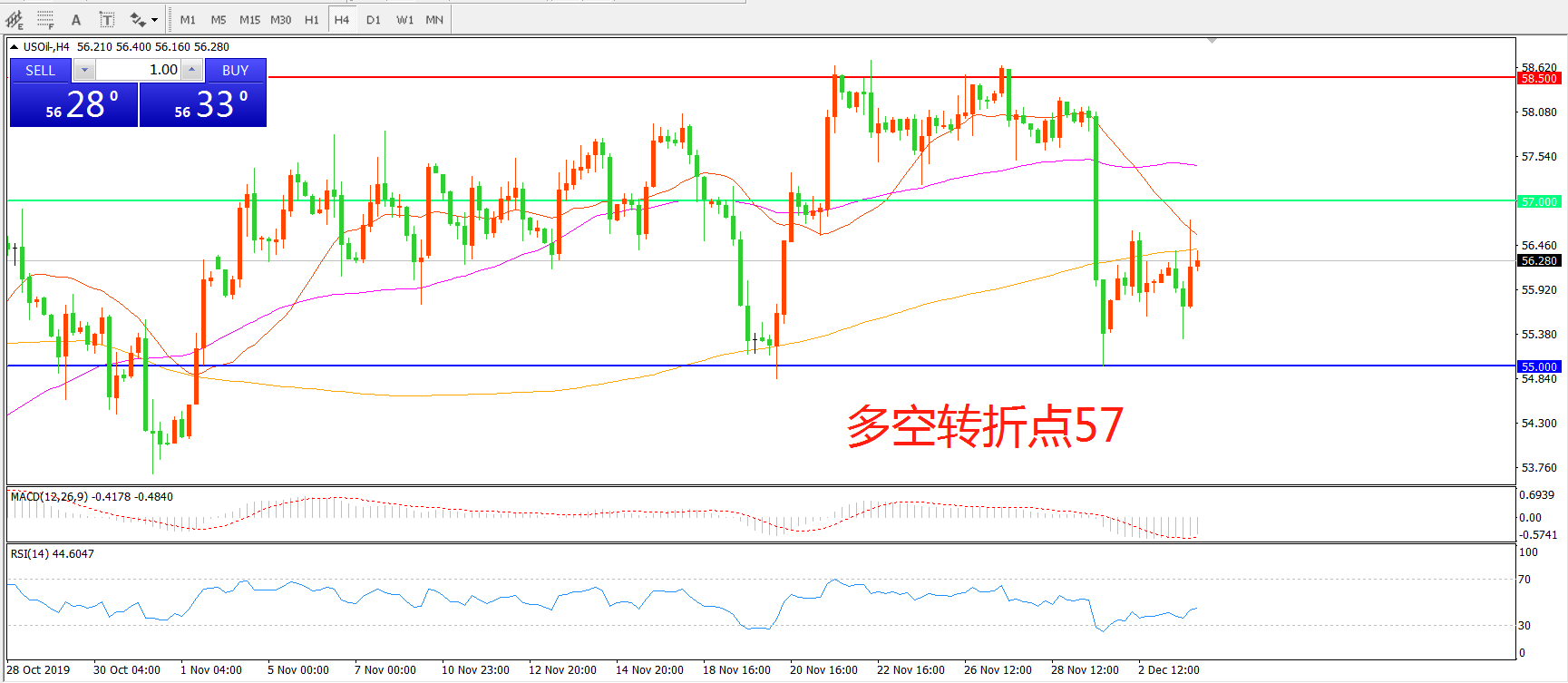 多空转折点:57.00