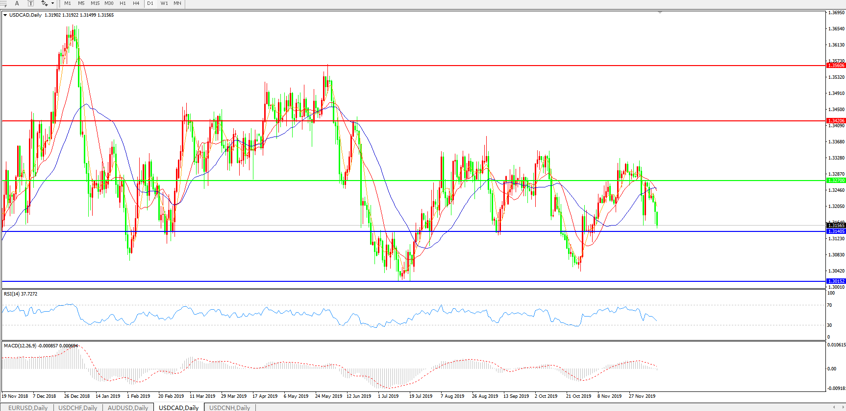 美元兑加元USDCAD    日线图: