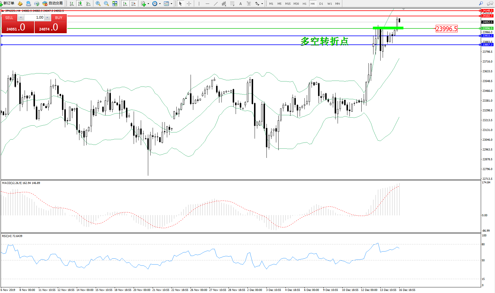 日经225指数12月16日(周一)收盘下跌43.60点,跌幅0.18%,报23979.50点。在首相安倍晋三公布经济刺激措施后,日本央行本周将维持货币政策不变,也许会按兵不动更长时间。接受调查的45位经济学家均预测,日本央行在本周四结束为期两天的政策会议时料决定按兵不动。并且自4月份以来首次出现多数受访经济学家预期日本央行的下一步政策行动将是收紧政策,表明政策预期自10月份调查以来已经发生急剧转变。