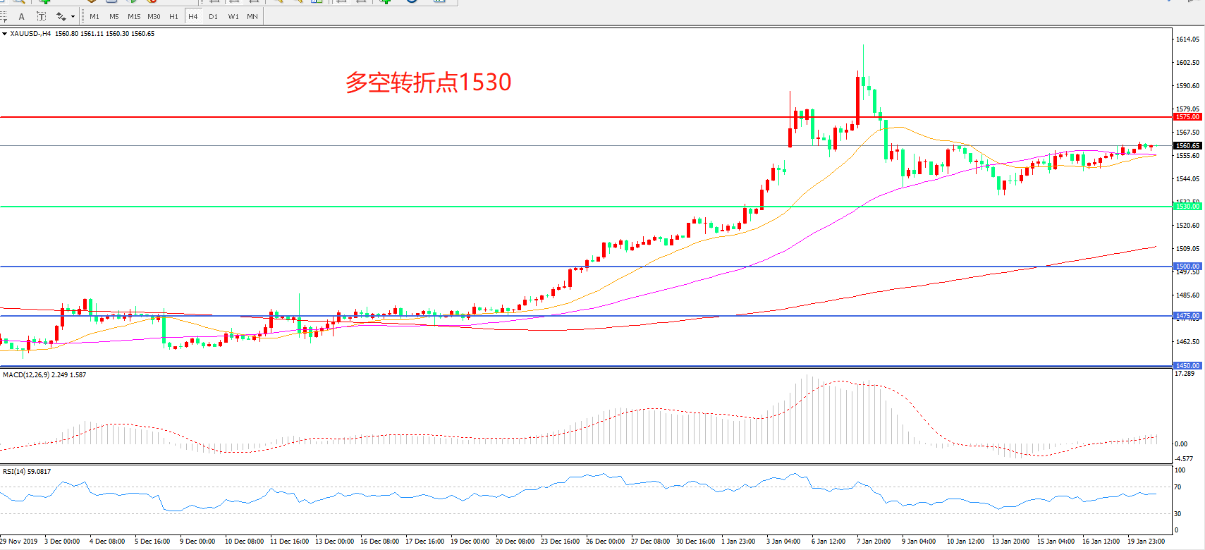 昨日,由于马丁路德金纪念日,美国市场晚间休市,因此价格波动非常有限。金价围绕1560附近进行整理,收报1560.39美元/盎司。目前市场主要还是关注特朗普弹劾案和英国脱欧等方面的消息,金价近期或依旧维持震荡格局。