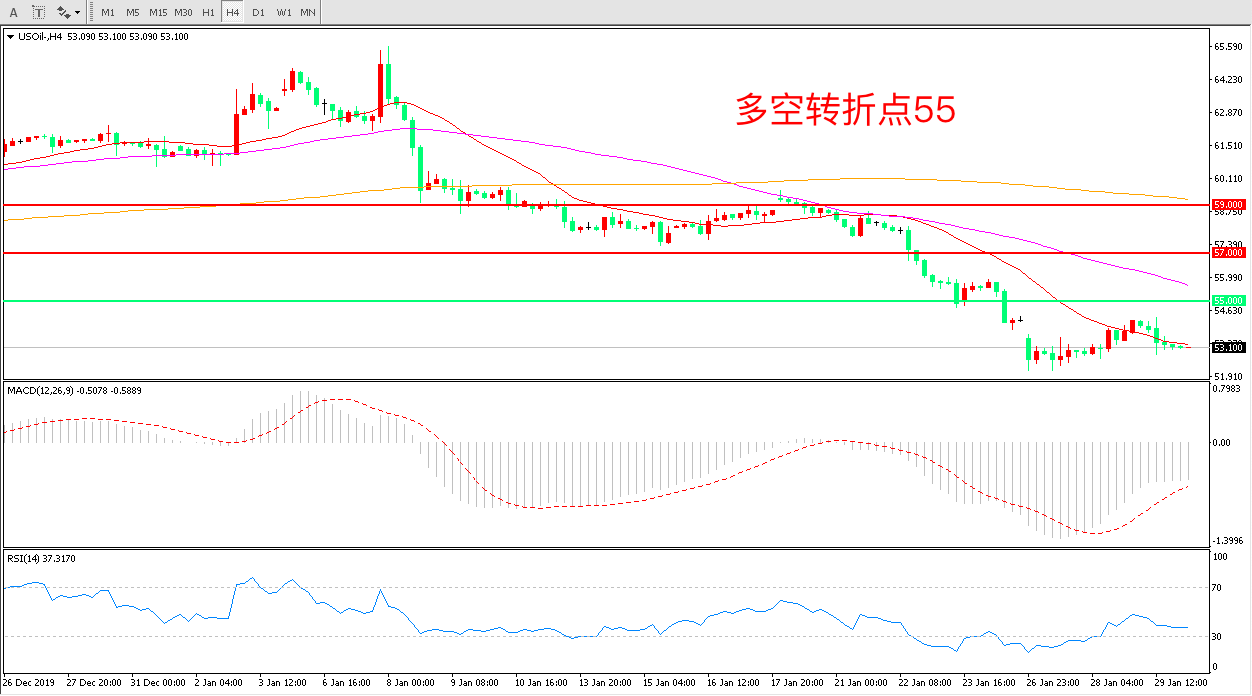 周三(1月29日) ,美国能源信息署公布数据显示,美国EIA原油库存增加354.8万桶过市场预期,利空油价,美国WTI原油价格短线下挫,收报53.41美元/桶。此后,美联储利率决议一如市场预期,维持利率在1.5%-1.75%不变,会后声明与上月大体相同,从措辞的变化来看,美联储认为居民支出的增长略微有所放缓,这令美元略微受到一些拖累。另一方面,疫情依然成为市场的主导因素,在中国采取防控措施的情况下,原油需求不可避免的会受到影响,短期利空效应仍然存在。