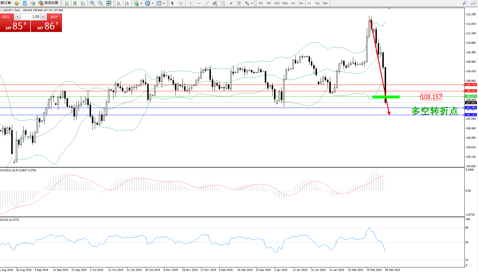 技术点评:空头动力持续重挫下行,即将破位前期低位,且布林带指标呈张口走势持续扩大,有进一步下行空间,MACD指标处于多头区域高位继续下行至0轴线附近徘徊,RSI指标跌持续下行跌破50均衡线进入空头区域向下移动中;