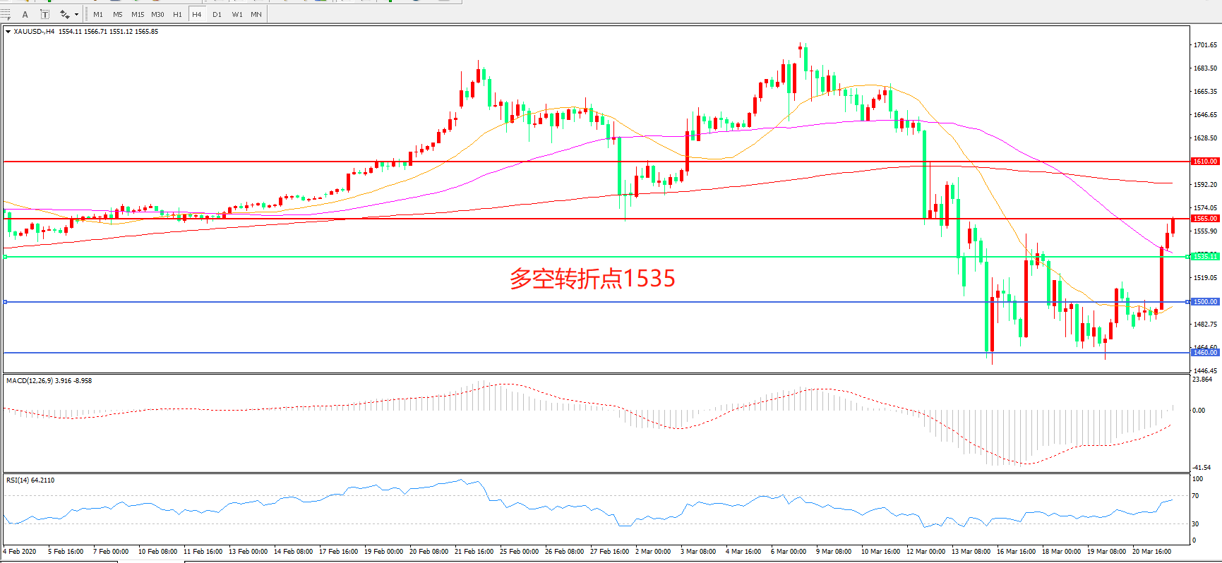 多空转折点:1530.00