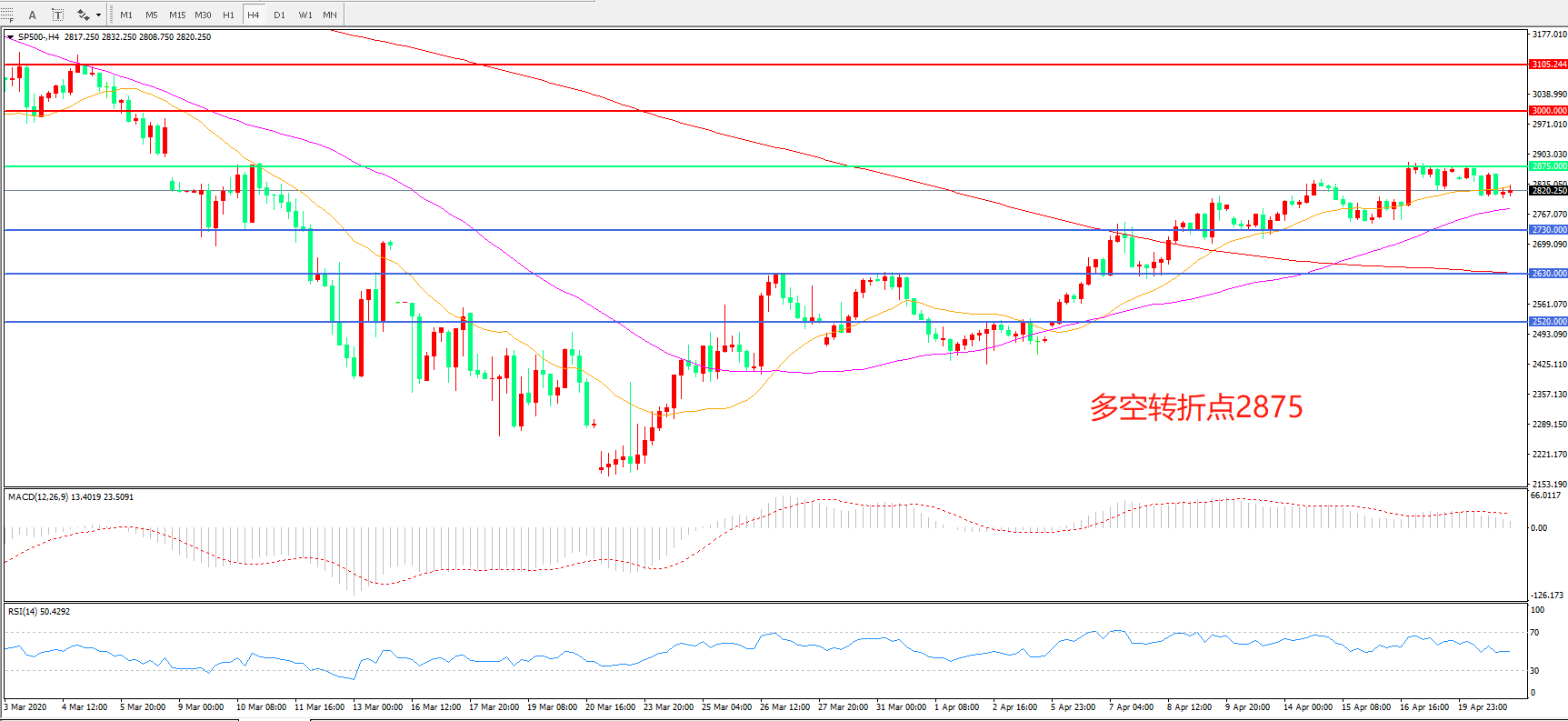标普500 SP500   4小时图