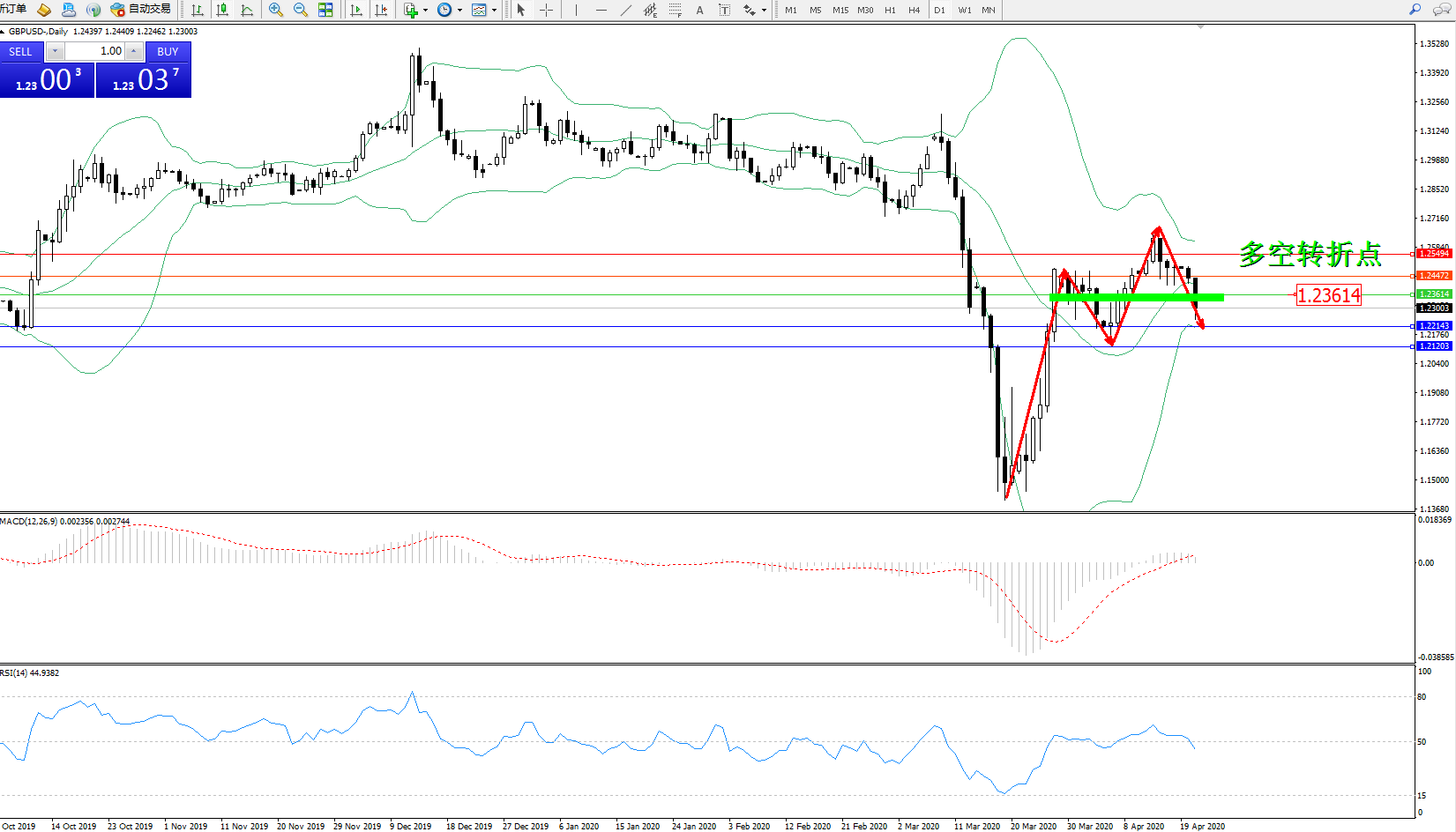 交易策略:1.23614下方看跌,目标:1.221431.21203