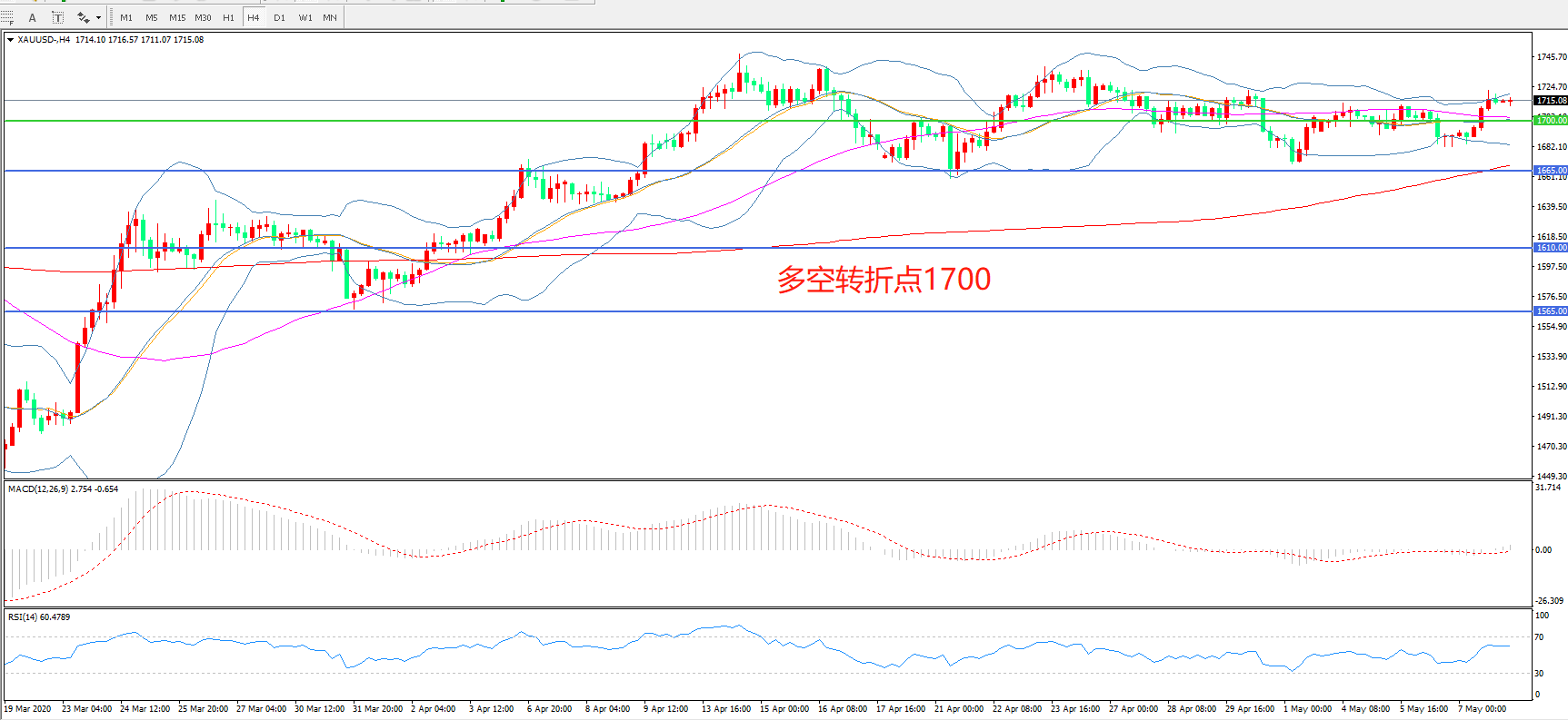 多空转折点:1700.00