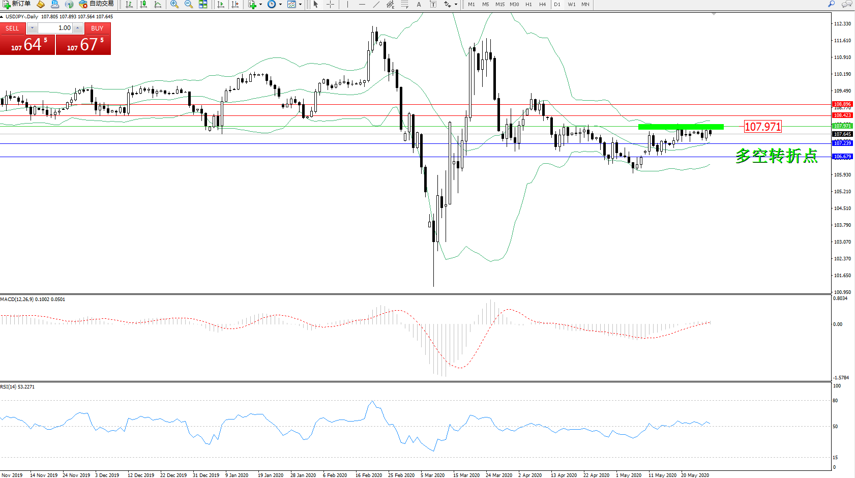 美元兑日元跌0.06%至107.65,接近盘中低点,日本政府5月维持整体经济评估不变,称经济因疫情而处于“极度严峻”形势,对出口、劳动市场及企业投资的评估看法悲观。 虽然在日本政府发布月度经济评估报告后,日元汇价略有回升,但总体上,美元与日元在汇市同进同退的格局并未改变,因双方都作为避险货币,受到全球疫情与经济相关消息的带动。而暂时,还没有消息能够彻底消除美元的避险货币属性,因此,美元兑日元上行及下行空间都相对有限,过去一个月来106-108之间横盘区间还将继续维持相当一段时间。