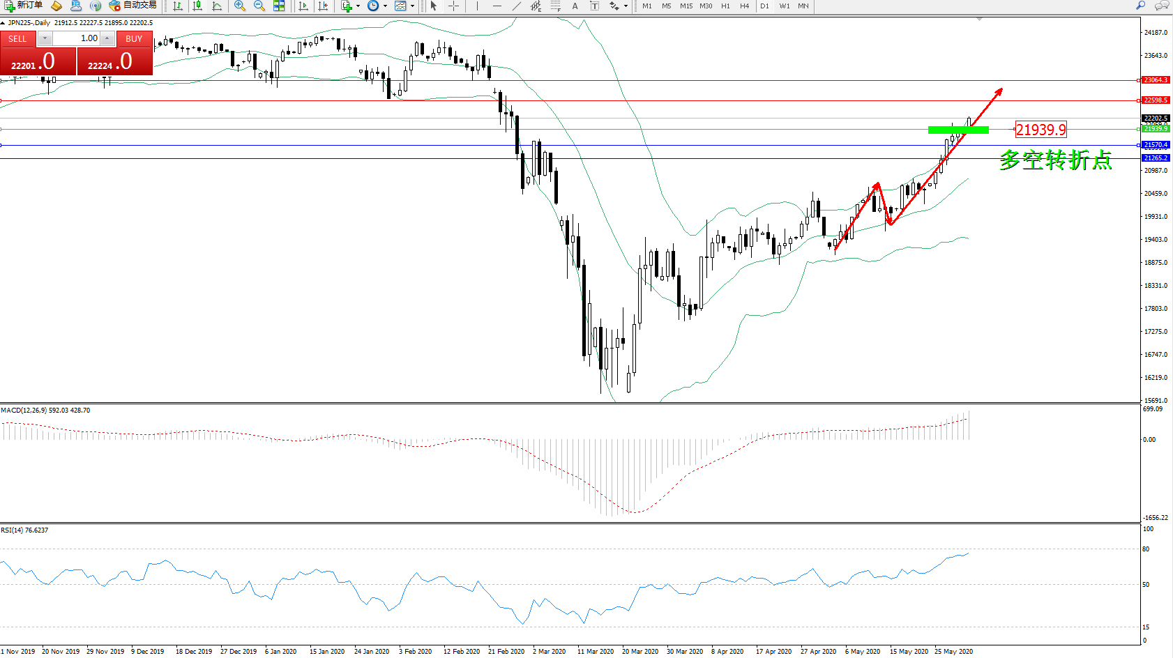 日经225指数6月1日(周一)收盘上涨177.11点,涨幅0.81%,报22055.00点。6月1日,日本财务省发表的2020年1-3月期间的法人企业统计数据显示,新冠肺炎疫情导致经济活动的停滞,除金融、保险业以外的所有产业的经常利益比上年同期减少32%,为151360亿日元(约合1万亿人民币),下跌幅度是10年半以来的最大跌幅。日本政府虽然在5月解除了“紧急事态宣言”,但由于社会对可能发生的第二波疫情感到担忧,日本距离正式恢复经济活动还需一段时间。准确及时的经济数据对于政策决策至关重要,尤其是在危机期间;但此次疫情打乱了许多关键统计数据的编制;情持续还突出了频繁更新数据的重要性,使决策者能够做出“最明智的决定”。报告补充称,许多传统的官方统计数据“只是不够及时,目前还不能派上用场"。