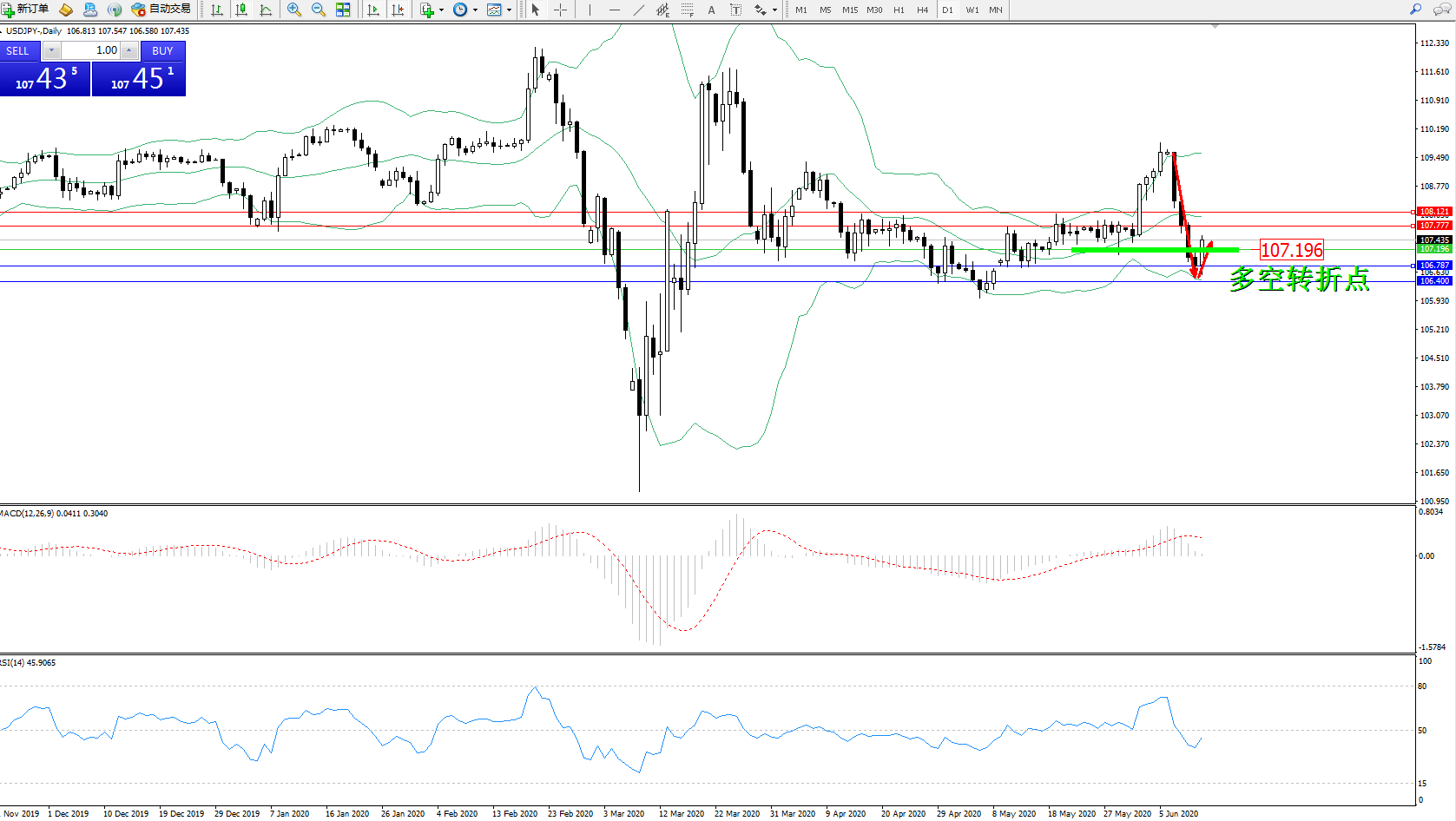 备选策略:107..196下方看跌,目标106.787106.400