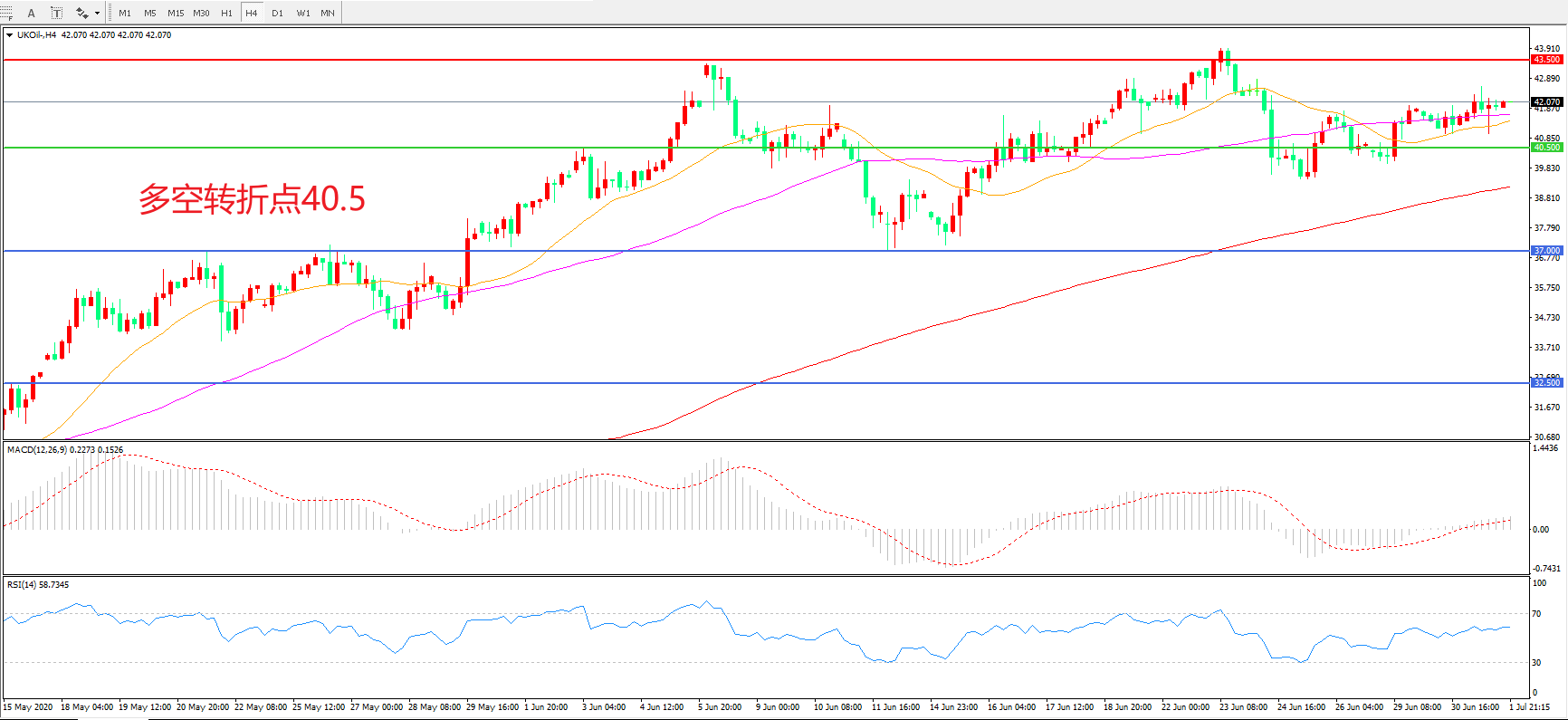 周三(7月1日),美国能源信息署发布的数据显示,截至6月26日当周,美国EIA原油库存减少719.5万桶,远超预期的降幅50万桶,数据发布后,布伦特原油短线反弹,随后震荡回落,收报42.07美元/桶。