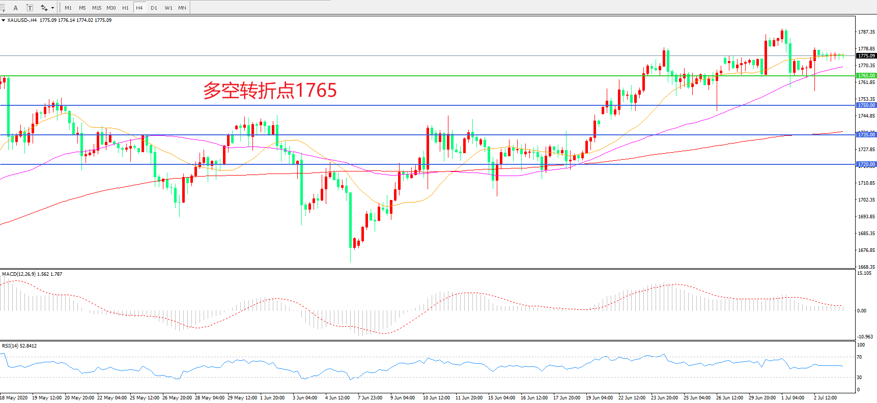 交易策略:在1765.00之上看涨,目标1780.00 1800.00