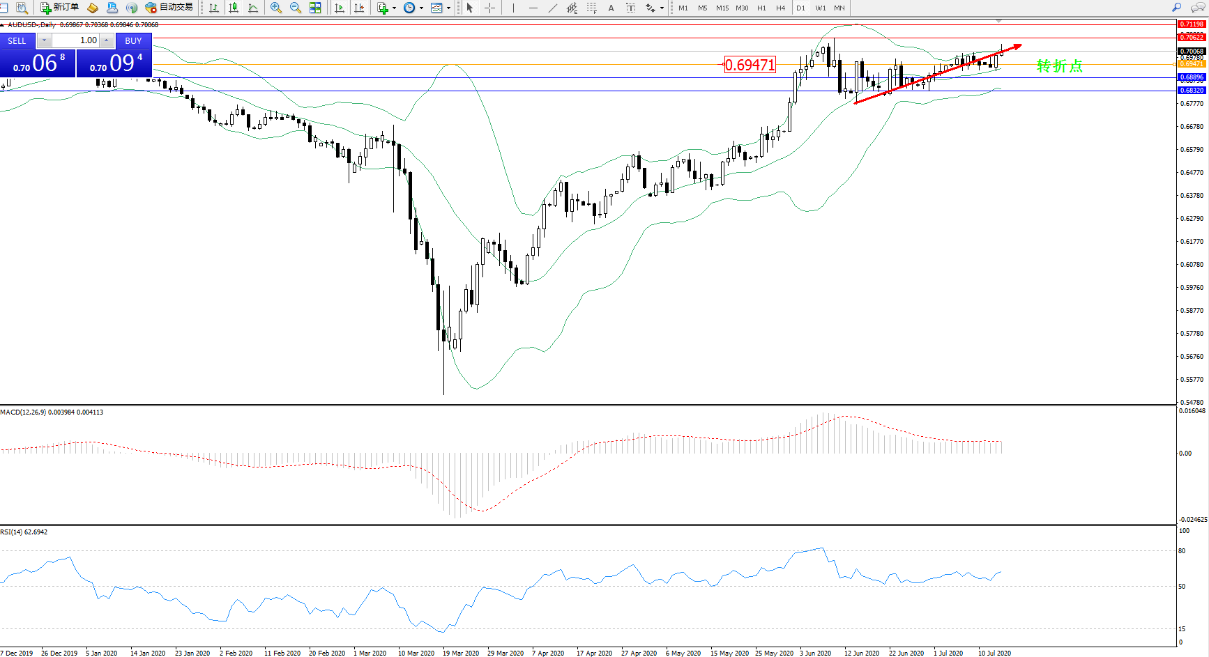 交易策略:0.69471上方看涨,目标0.706220.71198