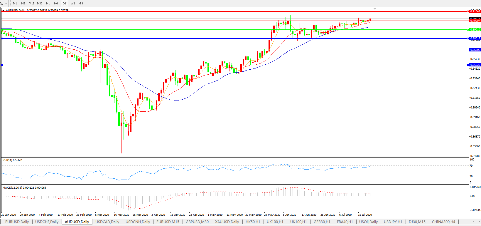 澳元兑美元AUDUSD 日线图: