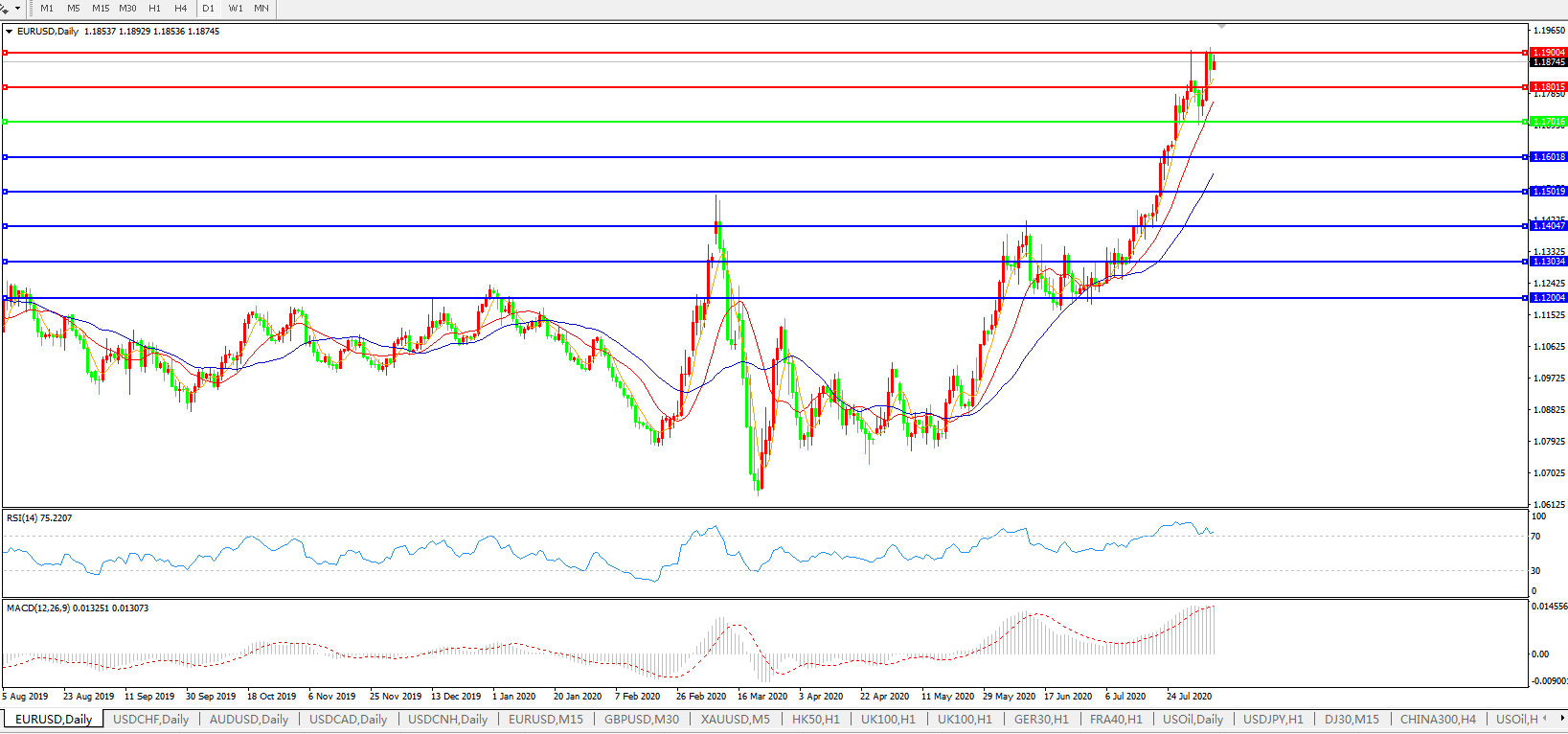 欧元兑美元EURUSD   日线图: