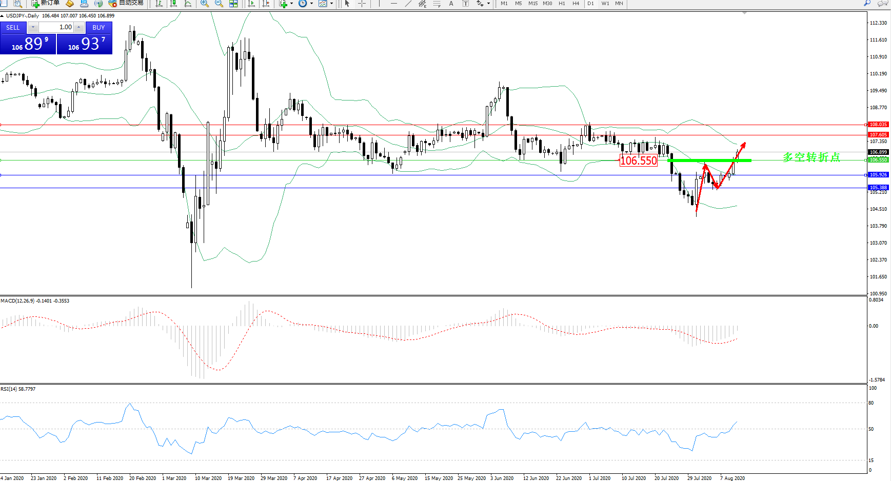 美元兑日圆拉升至106.899附近震荡,全球疫苗不断传来好消息,俄罗斯、美国、中国等疫苗均取得不同程度的进展,令避险日元继续遭到抛售,在疫苗研发乐观消息频传的背景下,日元进一步遭到抛售将是大趋势,短线料将进一步站上107关口上方,但之后进一步的上行,则需要来自美国方面自身的利多消息带动。假如美国财政谈判能有更多紧进展,并部分打消投资者对于大选前经济重现动荡的顾虑,那么汇价将进一步上看至107.50。