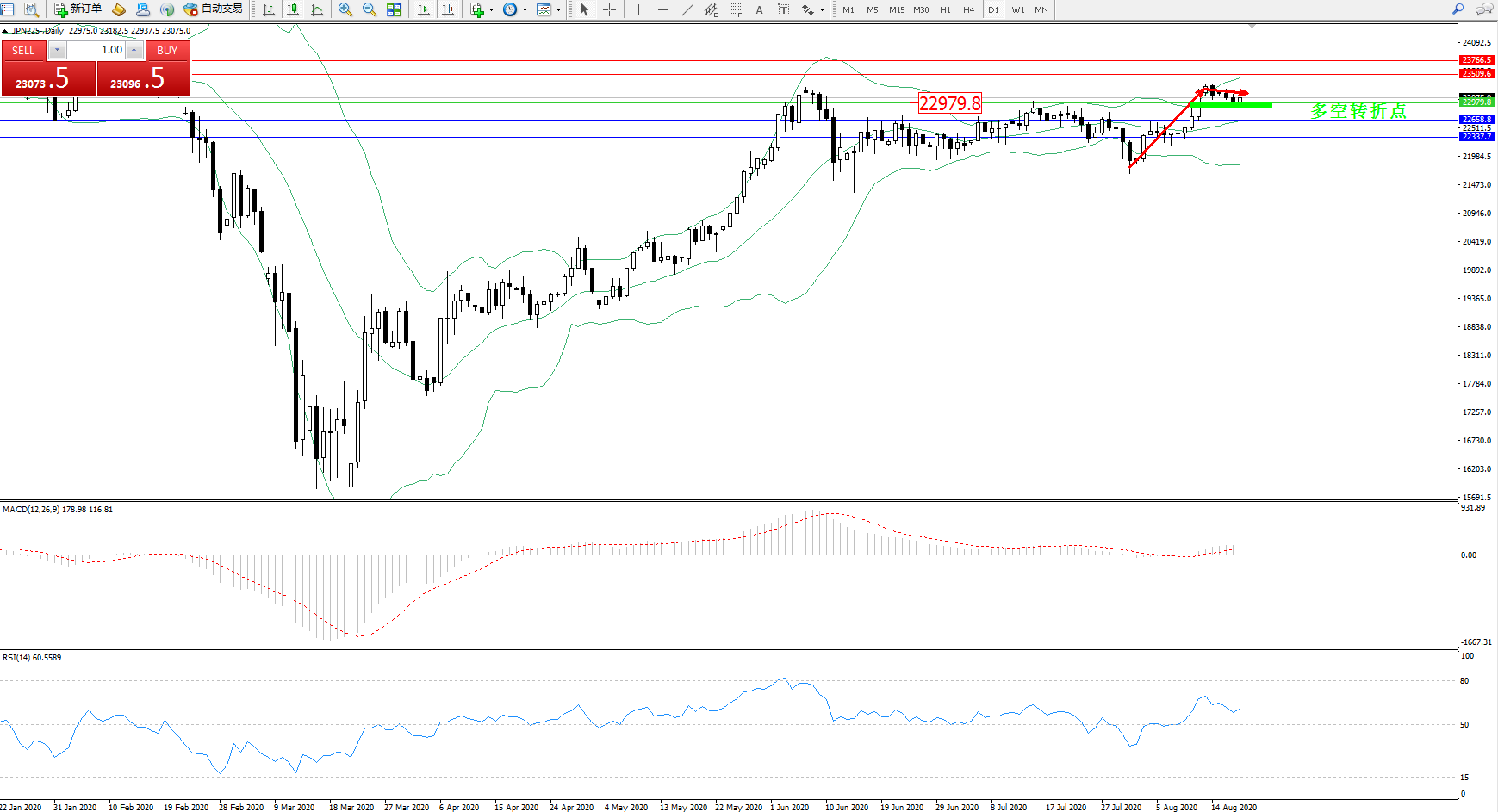 日经225指数8月19日(周三)收盘上涨70.42点,涨幅0.31%,报23121.50点。随着全球疫情反扑令贸易承压,日本的出口在7月份连续第五个月出现两位数百分比降幅;据日本财务省周三报告,日本出口值同比下降了19.2%,经济学家此前预计将下降20.9%;尽管主要市场重新开放,但作为日本经济增长主要动力来源的出口依然疲软;虽然最近几周感染增加,但日本的疫情应对情况仍远好于美国和其他主要市场,不过日本经济对贸易的依赖使得其复苏很不稳固;净出口下降对4-6月经济收缩的“贡献”几乎达到40%,突显了其有多么容易受到全球市场影响;部分国家复苏正在进行中,这可能有助于支持日本未来的出口;展望未来,预计第三季度出口将继续复苏,进口的好转可能也基本上会保持差不多的步伐。