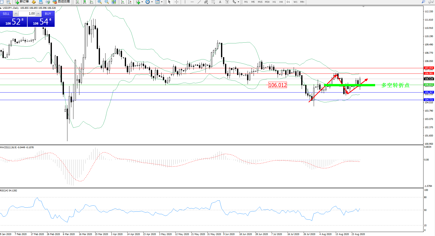 多空转折点:106.012