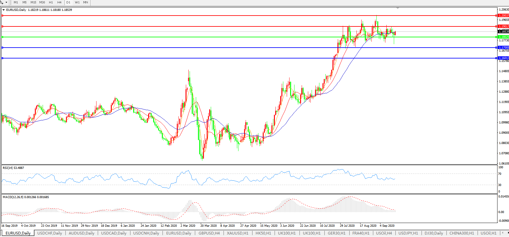 交易策略:1.1800上方看涨,目标1.1900、1.2000