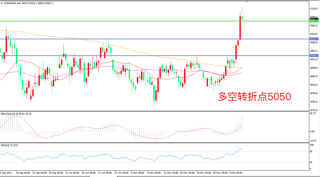 4小时图看,沪深300长阳连续拉升,短期表现偏强,5010形成下方支撑,MACD红柱增加,RSI指标走平,日内震荡上行概率较大。