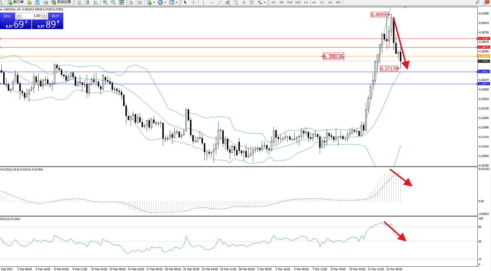 交易策略:6.38036下方看跌,目标6.36933、6.36074