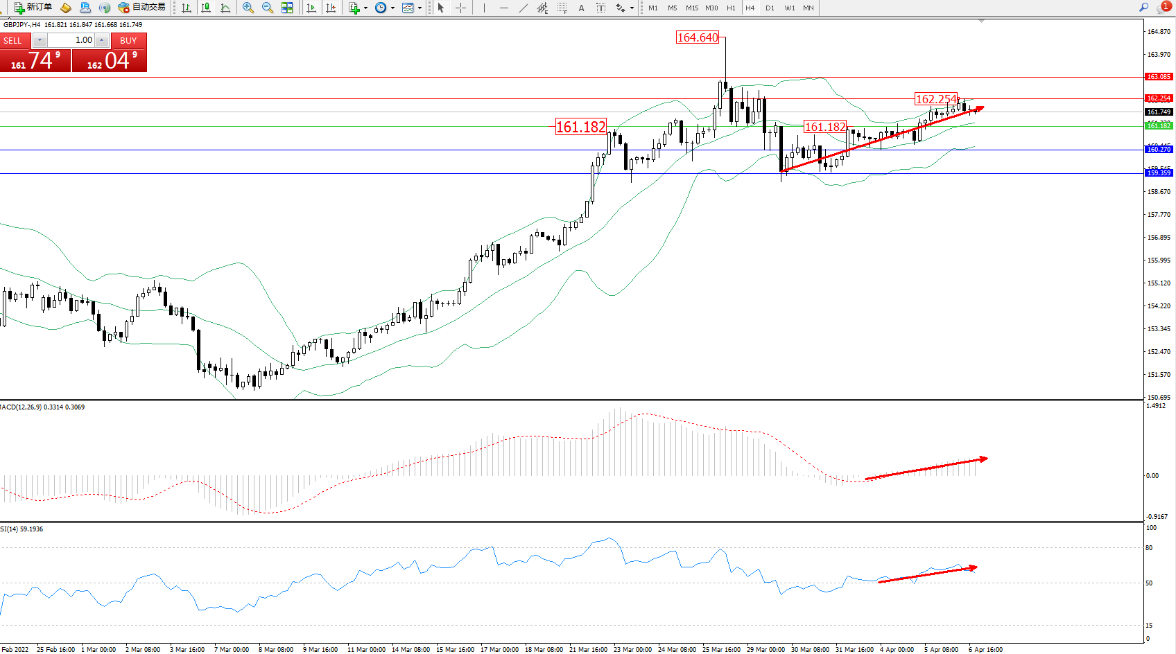 技术点评:多头动力延续布林带指标通道中上轨区间持续震荡上扬,高位抵达162.254位置节点后开始整理,短期多头动力有继续向上移动迹象,布林带指标呈上行趋势走势持续中,MACD指标处于0轴线上方维持缓慢上移中,RSI指标处于50均衡线上側弱势整理平移中;