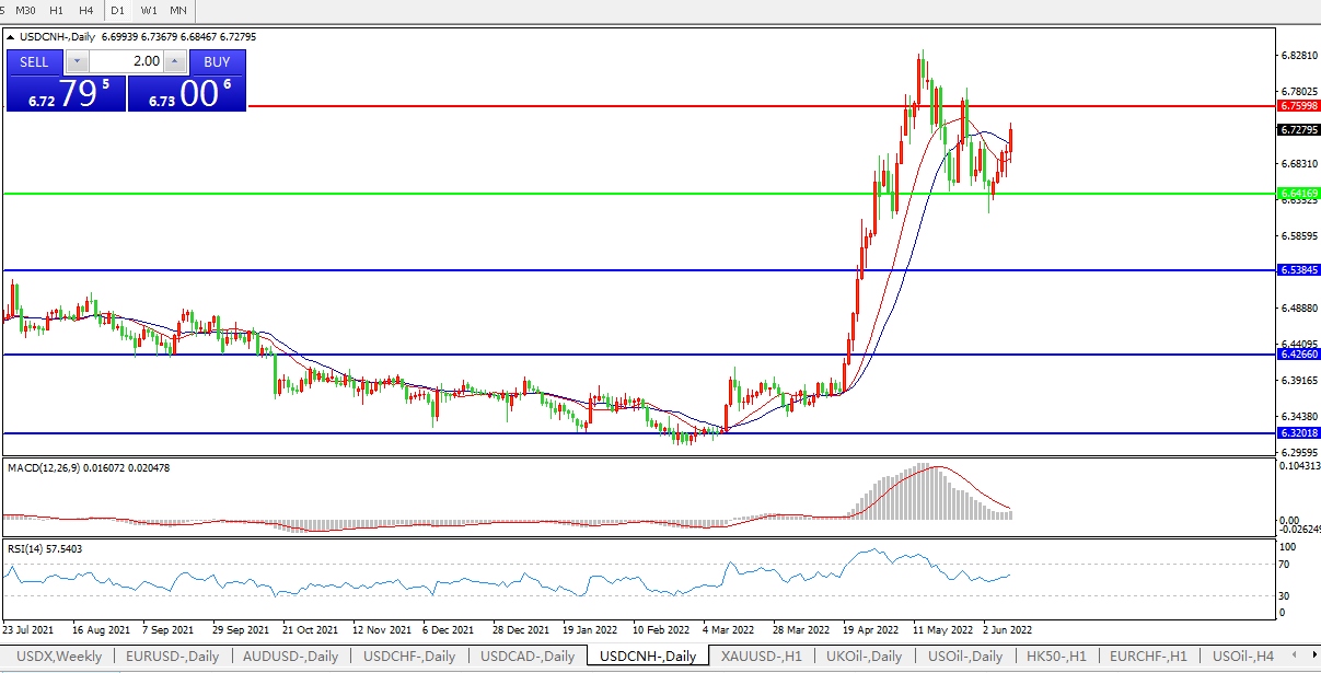 交易策略:在6.6416之上,看涨,目标价位为6.7600,然后为6.8870。