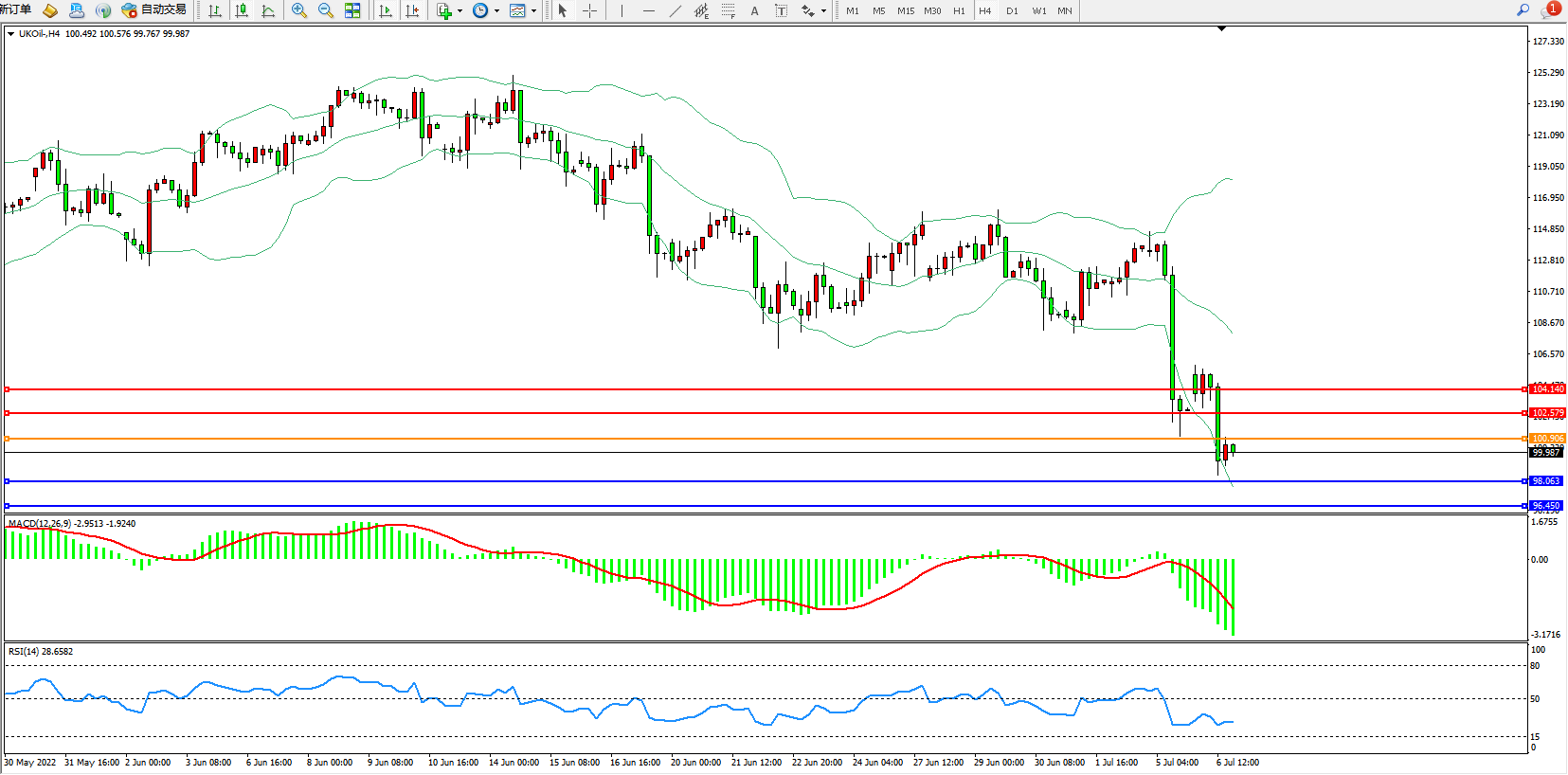 布油维持弱势下行至99.987附近震荡,多家机构下调了今年全球石油消费预期,EIA、IEA、OPEC认为,2022年全球石油消费增幅分别为228万桶/日、337万桶/日、180万桶/日,较年初的预测值大幅下调。