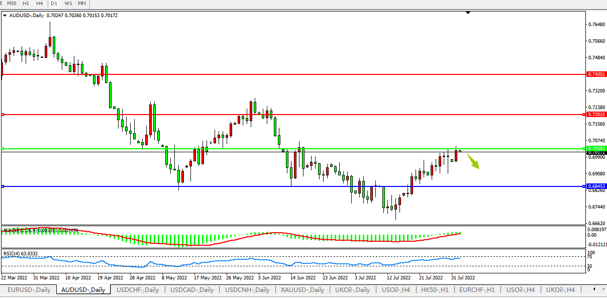 AUDUSD :上破0.7030压制在即