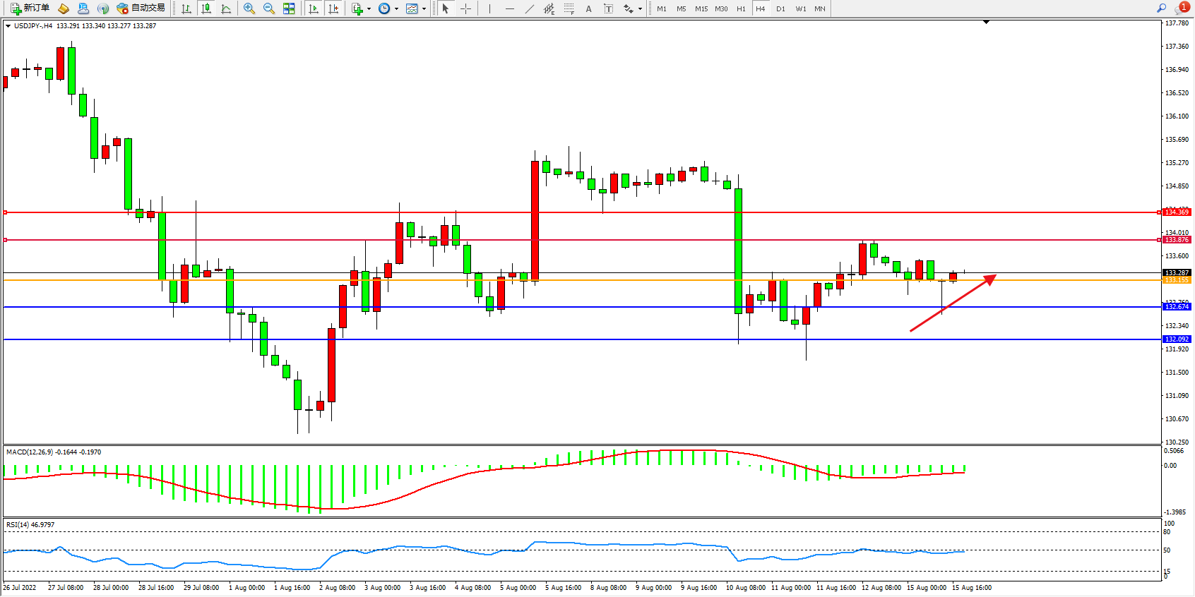 美元兑日圆维持133.287附近震荡, 美国国债收益率的交易迟滞,没有给多头提供多少动力。日本第二季度GDP数据低于预期,环比增长0.5%,低于预期的0.6%,但日还是获得了买盘,兑美元达到了日内高点。