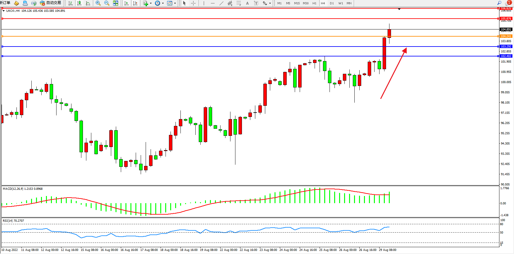 布油维持104.891附近震荡,德国天然气储存设施正在以比计划更快的速度加满,欧洲最大经济体有望避免在今年冬天出现严重天然气短缺。利比亚首都上周末发生严重冲突。市场担忧原油供应将出现新的中断。
