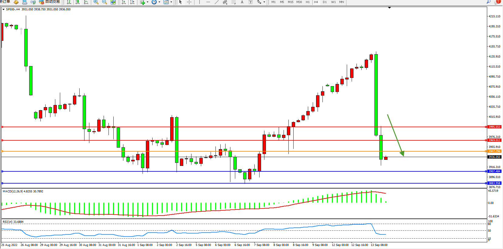标普500指数9月13日(周二)收盘下跌177.89点,跌幅4.33%,报3932.52点;美国通胀仍面临非常顽固的压力,这将导致市场对美联储的利率预期迎来改变。被视为美联储结束加息行动标志的4%的利率还不够高。