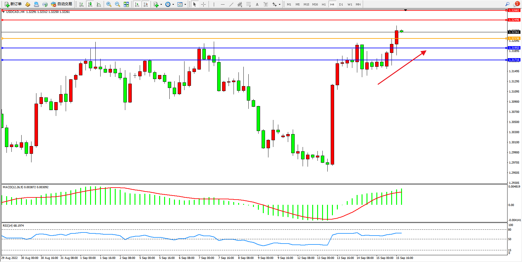 4小时图看:多头动力维持震荡上扬,高位窄幅整理后再度拉升,市场看涨情绪持续,MACD指标处于多头区域维持整理上移,RSI指标处于多头区域维持上行;