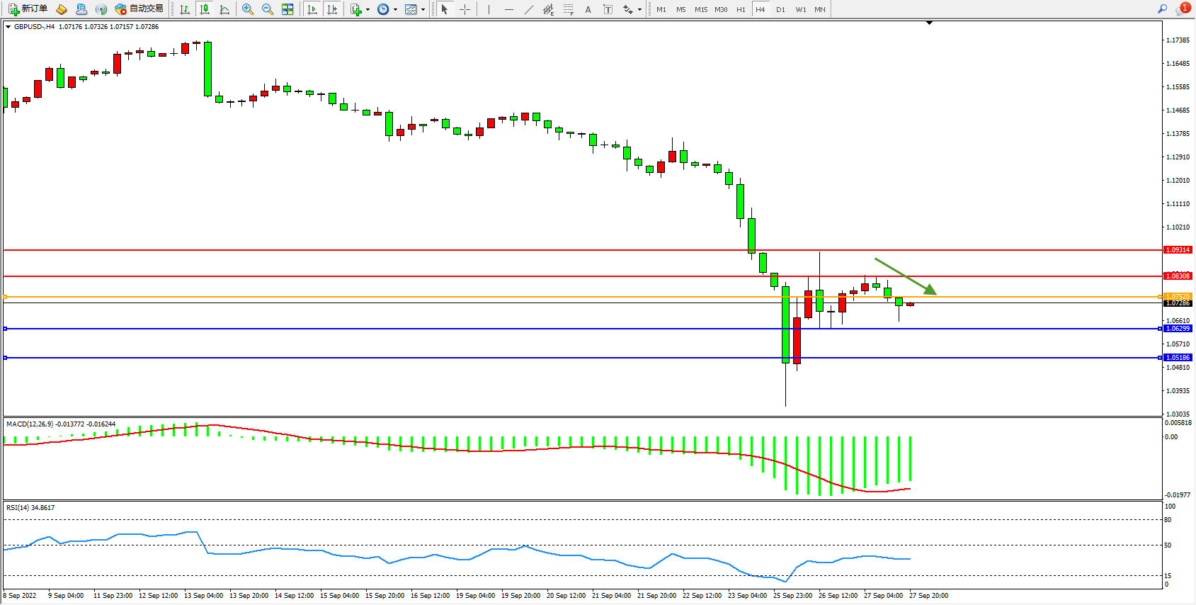 交易策略:1.07520下方看跌,目标1.06299、1.05186