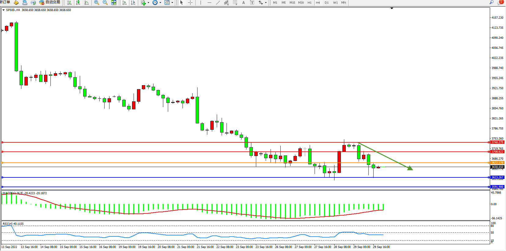 标普500指数9月29日(周四)收盘下跌77.64点,跌幅2.09%,报3641.40点;因美国经济相对强劲使得美联储能比其他国家更积极地加息,加上黯淡的全球经济增长前景,从而推动美元指数重新走高。