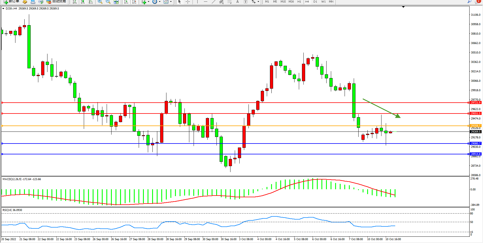 道琼斯指数10月10日(周一)收盘下跌93.85点,跌幅0.32%,报29202.94点;随着美联储为缓解通胀升高利率的压力越来越大,非农就业人数将在明年初开始萎缩,预计美国今年第四季度就业增长的速度将大致减少一半,明年第一季度将每月减少约17.5万个工作岗位。