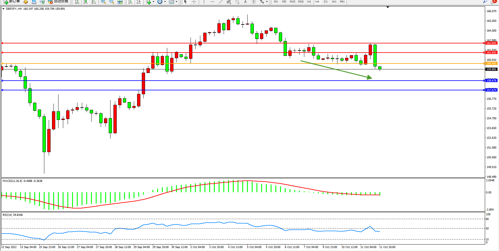 4小时图看:高位空头动力维持窄幅整理缓慢下行,市场空头情绪开始伺机入场,MACD指标处于0轴线下侧弱势徘徊,RSI指标处于50均衡线下侧窄幅整理;
