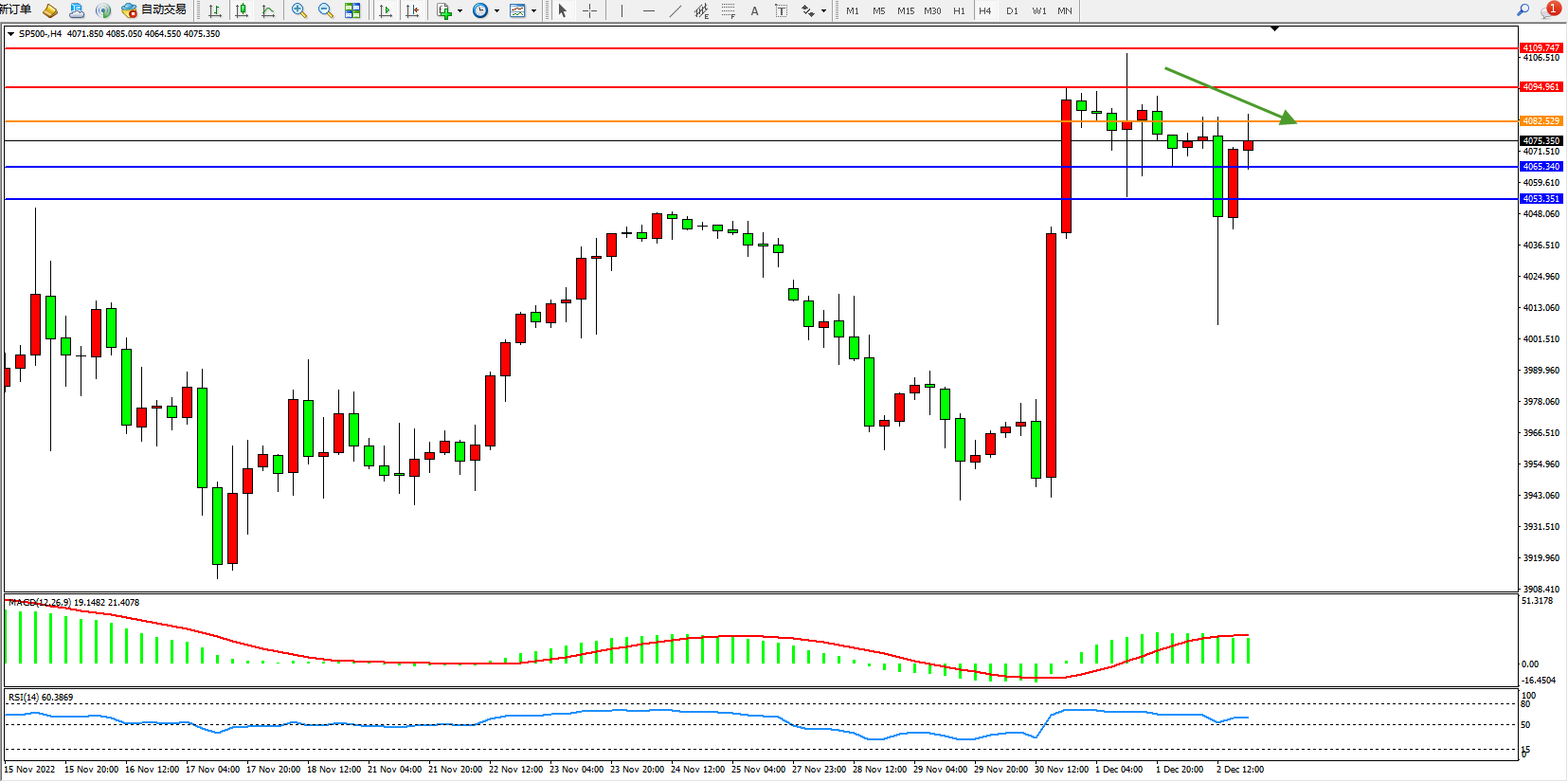 标普500指数收跌4.87点,跌幅0.12%,报4071.70点,本周累计上涨1.13%。美国11月就业人数增长超过预期,且薪资增速较上月有所加快,暗示着就业市场仍然非常强劲,美联储还需要继续遏制通胀。