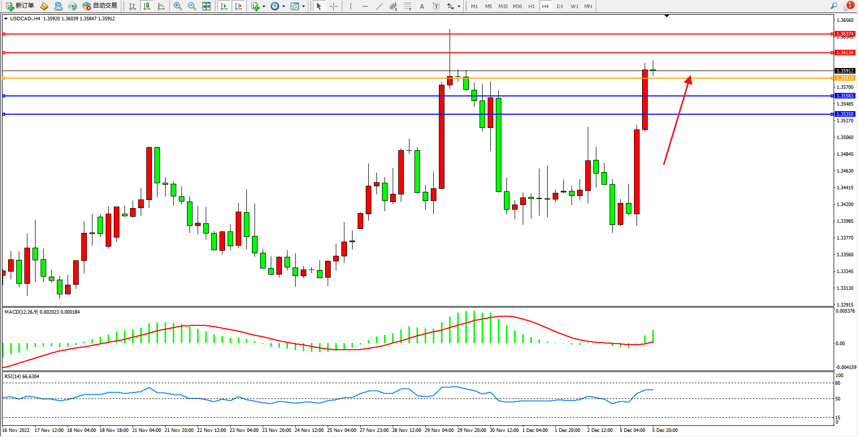 美元兑加元维持1.35912附近震荡,预计加拿大央行将保持一定程度的谨慎。我们认为终端利率定价(4.25%)是合理的,在周三的加息之后,这个时候,加拿大央行不太可能这样表现,但如果通胀数据改善,经济数据恶化,加拿大央行可能在1月暂停加息。