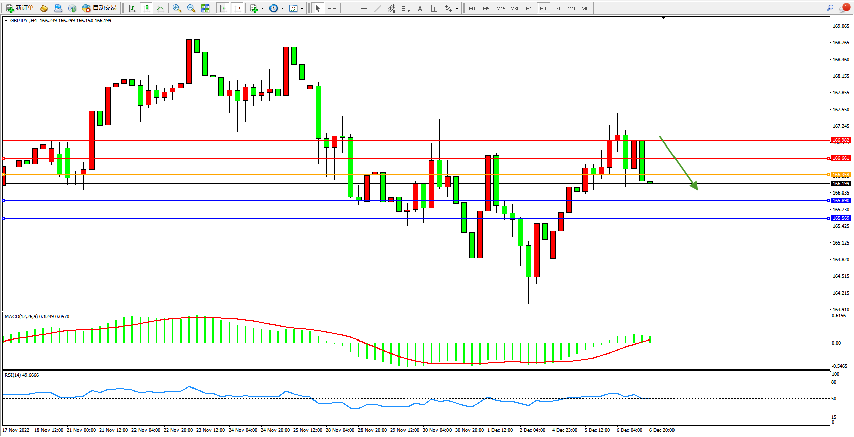 交易策略:166.358下方看跌,目标165.890、165.569