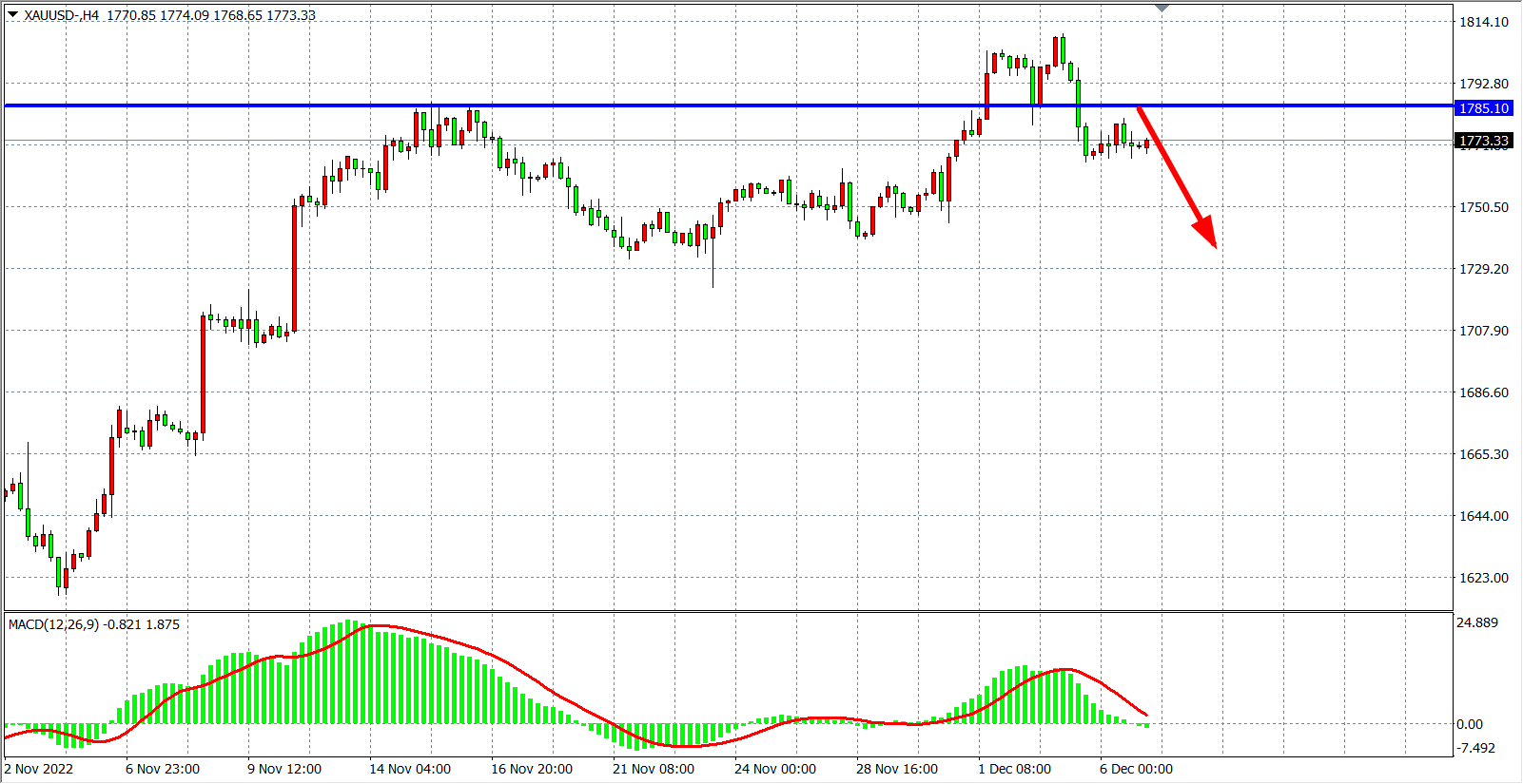 交易策略:在1785.00 之下看跌,目标1770.00         1755.00