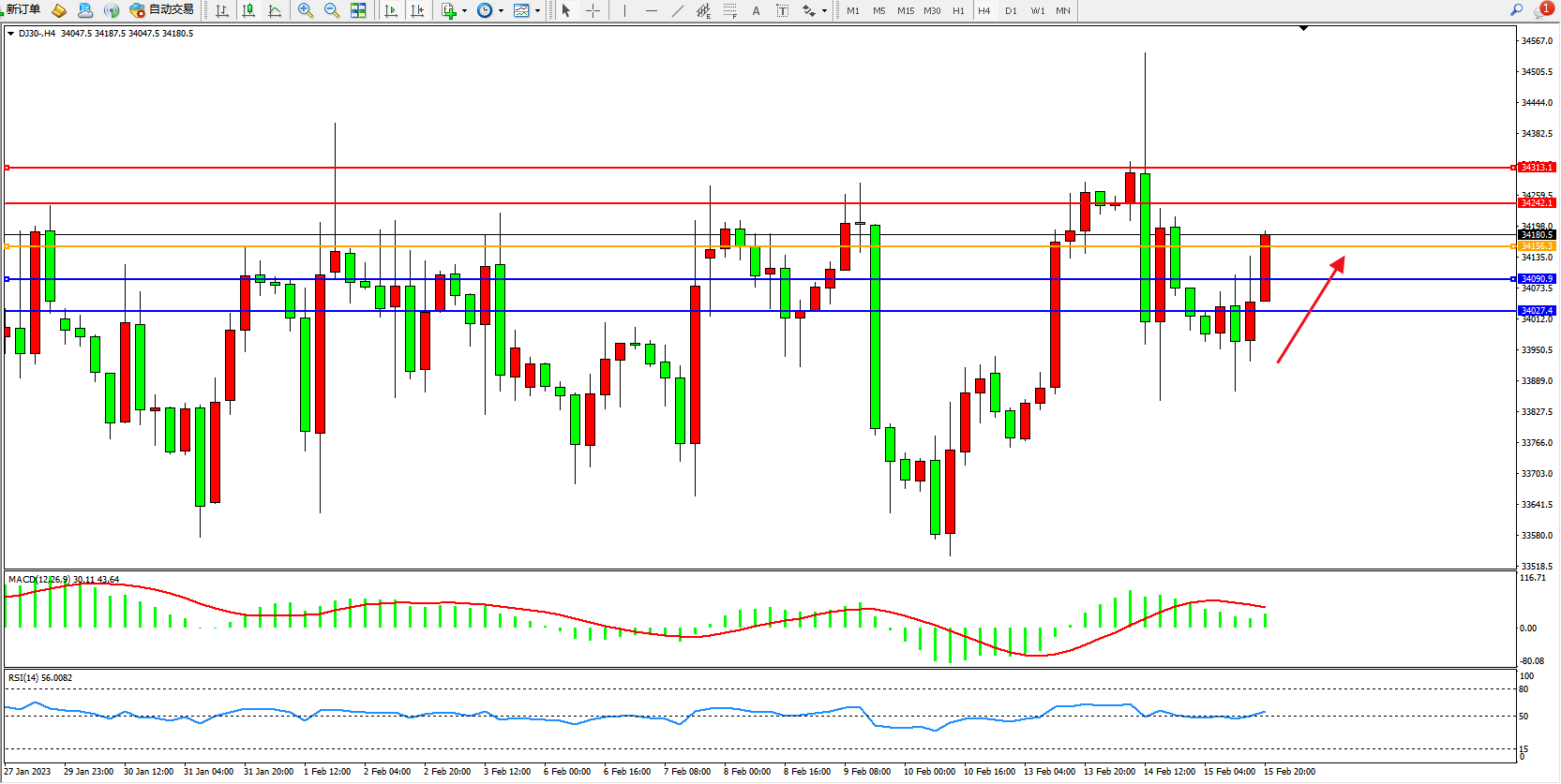 道琼斯指数2月15日(周三)收盘上涨39.07点,涨幅0.11%,报34128.34点;美国1月零售销售月率 3%,预期1.80%,前值-1.10%,为2021年3月以来最大增幅。