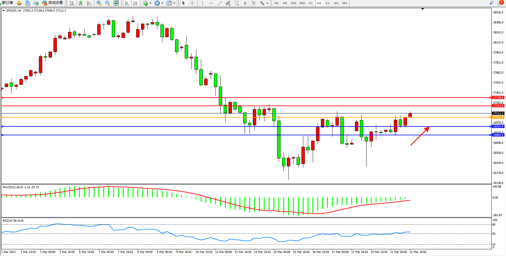 日经225指数3月20日(周一)收盘下跌371.29点,跌幅1.36%,报26962.50点。日本的主要企业已经结束了年度劳资谈判,下一财政年度的平均工资将调升3.8%,是大约三十年来最大涨幅。日本-东京证券交易所-春分日,休市一日。