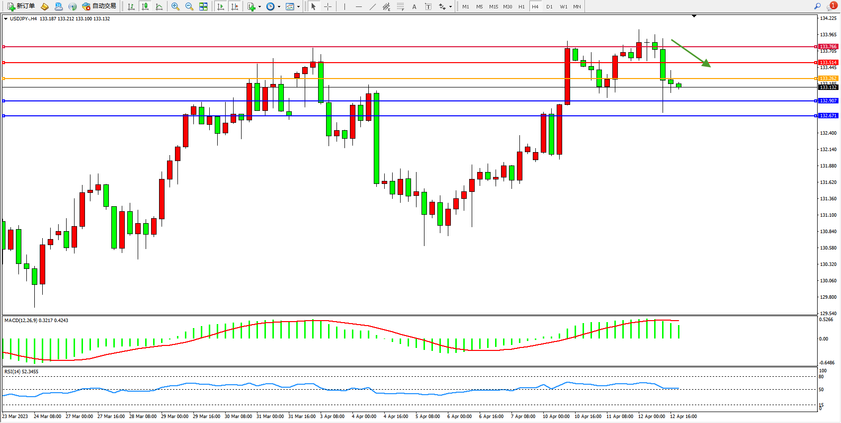 美元兑日圆维持133.132附近震荡,美联储积极的货币政策紧缩周期与日本央行超宽松政策之间的鲜明对比,美元弱势震荡,日元跌创近四周新低。