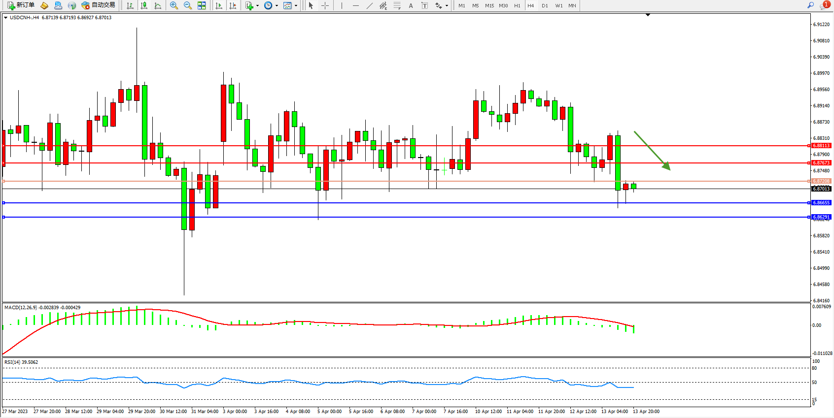 备选策略:6.87208上方看涨,目标6.87673  6.88113