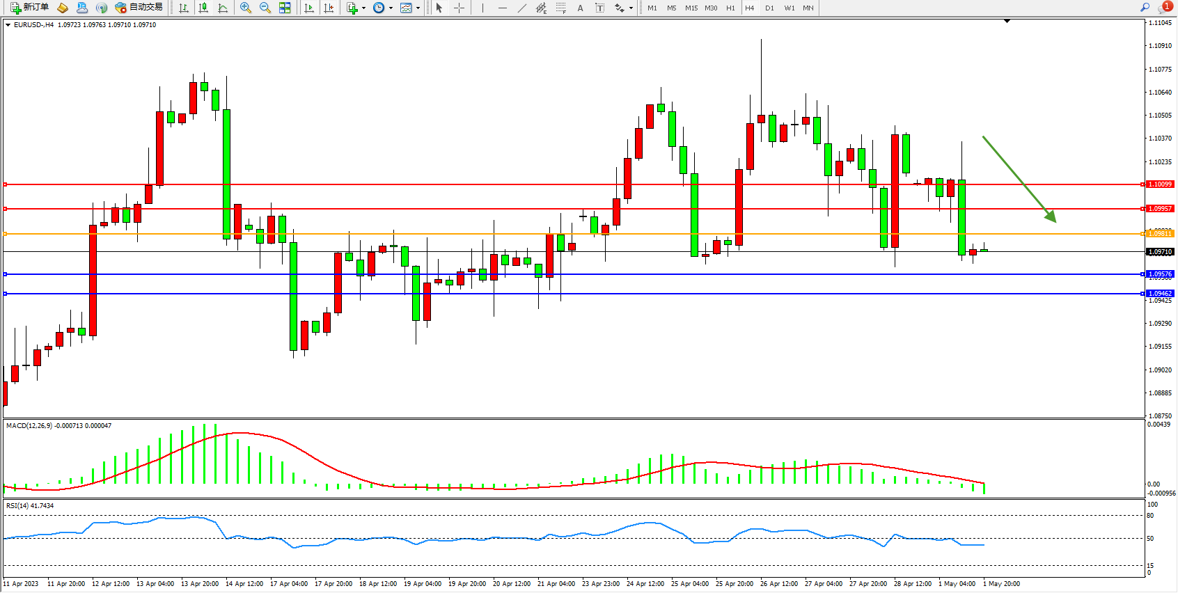 EURUSD:震荡下移