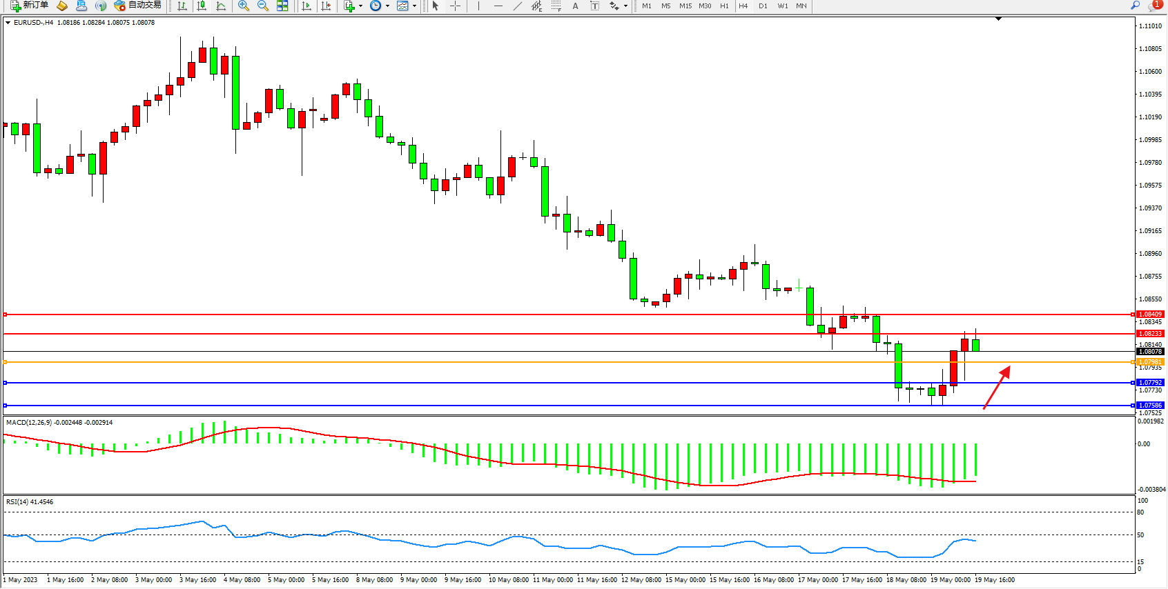 4小时图看:低位多头动力维持震荡上扬,短期看涨情绪涌现,市场多头强势反转上移,MACD指标处于空头区域整理上移,RSI指标处于50均衡线下侧弱势整理;